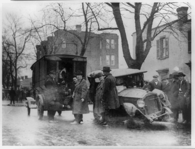 After a thrilling chase through the busiest streets of Washington, a couple of bootleggers and their car are apprehended by the Capitol police, on Jan. 21, 1922. (Original photo courtesy Library of Congress)