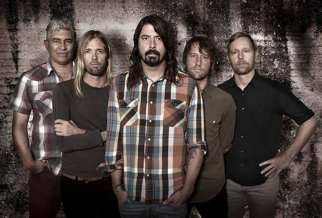 Dave Grohl (center) and the Foo Fighters, before “breaking a leg” (Photo by Hayley Madden)