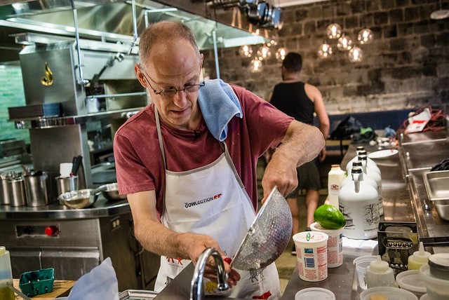 Zeke Emanuel tests the menu for this weekend’s breakfast series at Union Market’s new Masseria restaurant. (Photo by Travis Vaughn)