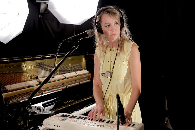 Laura Burhenn plays keyboards as The Mynabirds in a performance for WFUV on July 16, 2015. (Photo courtesy WFUV)