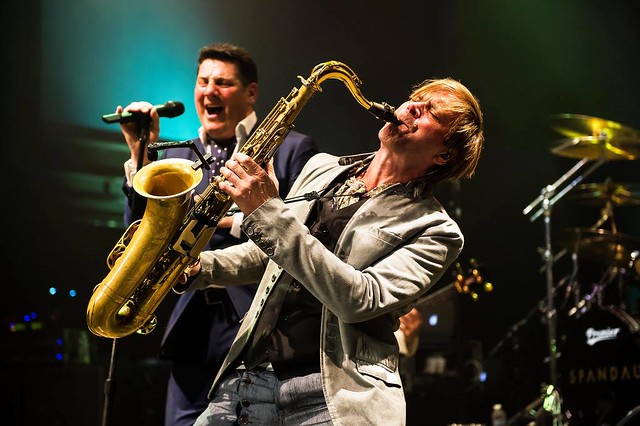Steve Norman of Spandau Ballet was a star player at the 9:30 Club on April 28, 2015. (Photo by Joy Asico)