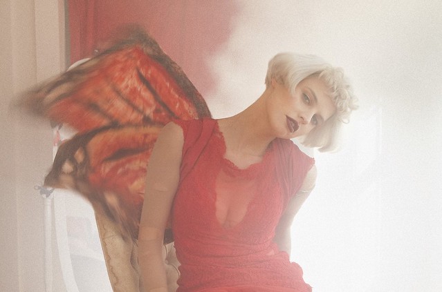 Ruby the Rabbitfoot stepped on to the 9:30 Club stage Wednesday night as the opener for Of Montreal, making a striking first impression in her bright blue and red bolero jacket and skirt. As she begins her set with the song “Second Wind,” Ruby’s splashy look and punkish peroxide locks contrast with the subtle introspective nature her sound.