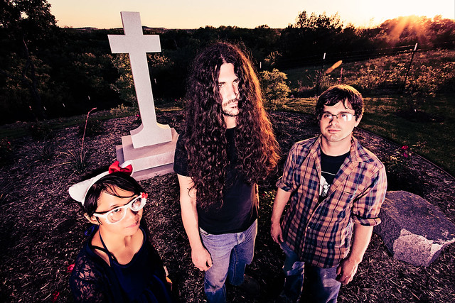 A former lineup of Bloody Knives with Preston Maddox (voice/bass/sounds), Jake McCown (drums), and Kim Calderon (samples) pictured. (Photo courtesy Saint Marie Records)