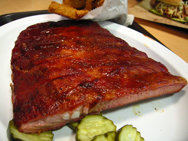 Ribs from Oklahoma Joe’s in Kansas City, Kansas (Photo by Adam Kuban)