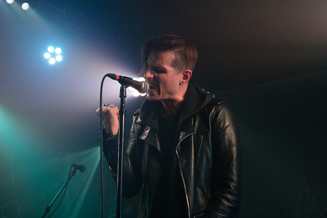 Wesley Eisold of Cold Cave sings at the Rock and Roll Hotel on Jan. 25, 2017. (Photo by Paivi)