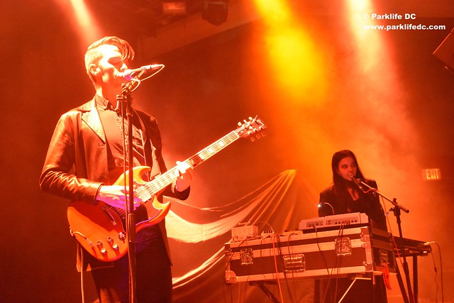 Based in Los Angeles, VOWWS visited 9:30 Club in DC on Feb. 1 to open for England’s White Lies. (Read our Parklife DC review of White Lies at 9:30 Club.) Guitarist Matt and synthesist Rizz played eight tracks mostly from their debut full-length album The Great Sun, released in 2015 via Cleopatra Records.