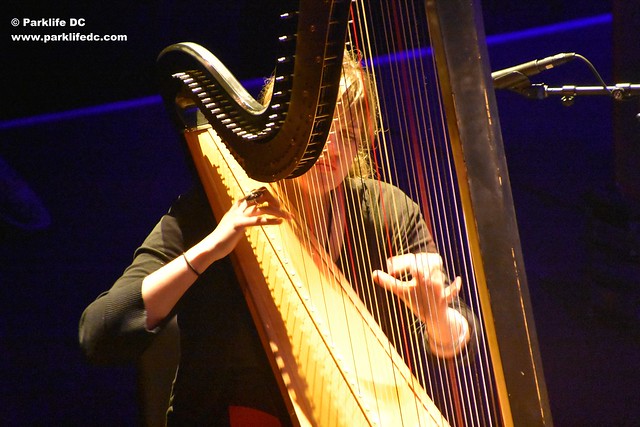 Starting in March, Mary picks up a few tour dates with Waxahatchee, including a date at Johnny Brenda’s in Philadelphia on March 15. Keep your ears open for the faraway melodies of her harp (which she sometimes disrupts with a bit of discordant electronics)! Here are some pictures of Mary Lattimore performing on her harp at 9:30 Club on Feb. 13, 2017.