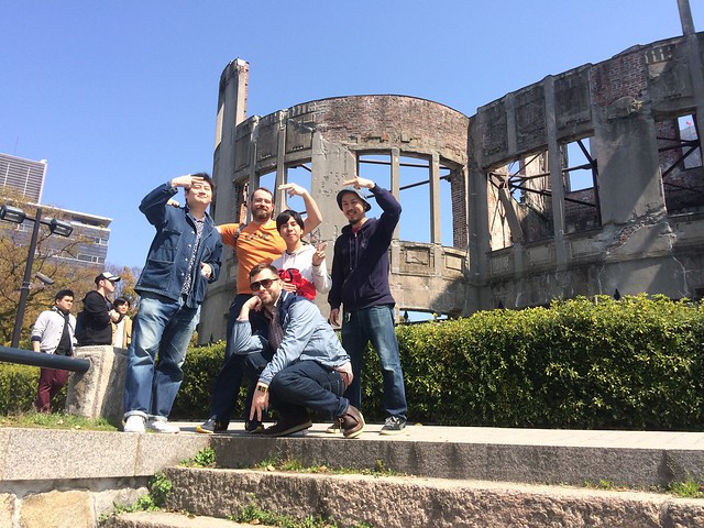 Rob Sevier and Jon Kirby with friends in Japan recently. (Photo courtesy Numero Group)