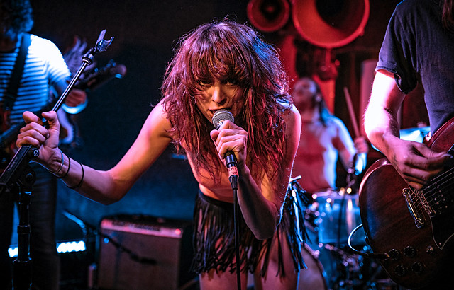 Throughout the set, Sabrina went out into the crowd, swung from part of the stage, and encouraged fans in the audience to sing along with her. And it was clear that zest wasn’t coming from Sabrina alone, as Andrew Cashen (guitar) shared vocal duties through a makeshift mic screen made of a rag (or a sock). Andrew played off Sabrina, standing atop his amp while she ran across the stage and the rest of the band — Andy Bauer (guitar), Graham Low (bass), and Daniel Blanchard (drums) — all rocked out with equal abandon.