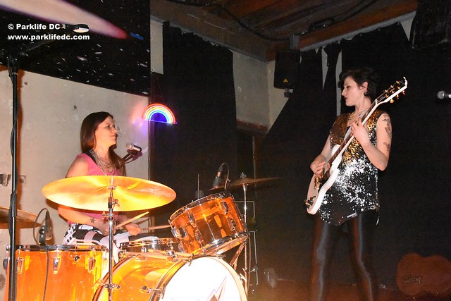 Listening to Bat Fangs, the full-blast duo of Betsy Wright and Laura King, is a delightful exercise in identifying influences. But their electrifying lines of rock ‘n roll truly ignite in live performances, such as with the band’s sold-out show at Comet Ping Pong on Friday.