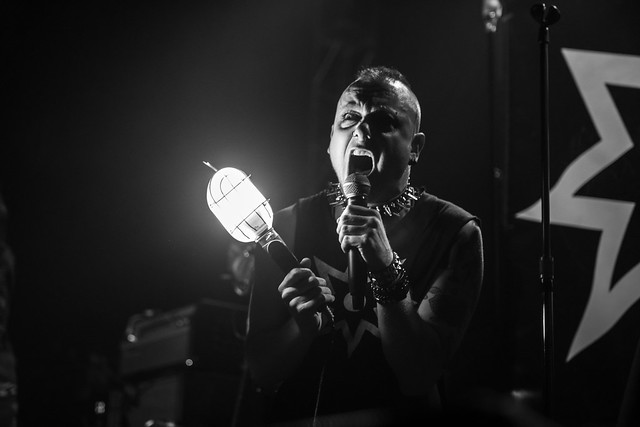 Brooklyn industrial trio The God Bombs — consisting of Justin Symbol, Jabbath Roa, and Edrick Supervi — opened Ministry on their latest North American tour, which just wrapped Saturday. The tour stopped at Rams Head Live on Monday, April 23, and we previously brought you shots of Ministry and pix of Chelsea Wolfe. Jason Nicholson was there to shoot the action, and now here are some pictures of The God Bombs as well.