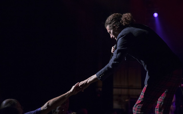 David Shaw of The Revivalists shares a moment with a fan at Wolf Trap on Aug. 19, 2018. (Photo by Will Colbert)