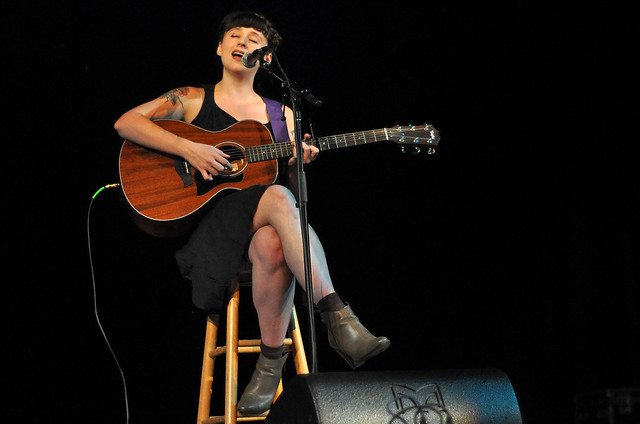 Taking the stage, Katie sat at the piano, opening her set solo. After a couple tunes on the piano, she switched to acoustic guitar. She then she brought out the two opening acts, Anna St. Louis and Night Shop, to back her up on electric bass and drums, respectively, before she finished her set alone.