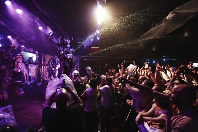 Formed in Richmond, Virginia, in 1984, GWAR has always included a rotating list of band members. Their performance and music centers around fictional characters and storylines that come alive on stage. GWAR tends to focus on outlandish topics related to sex, violence, and politics, often including a theatrical performance showcasing an untimely death of a person in the public light. Those in attendance take part in the theatrics by being drenched in fake blood as the band rocks out to their songs.