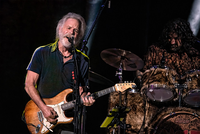 But as I chatted up a fellow concert-goer so grateful for the late start, he quipped, “Well, you know, they’re on Grateful Dead time.” And thank goodness for that, because as Bob Weir and Wolf Bros took the stage, they didn’t fool around, starting the evening with the Grateful Dead number “Jack Straw” and then into Merle Haggard’s “Mama Tried.”