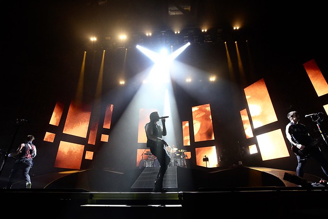 Shinedown is touring along with Papa Roach and Asking Alexandria. The UMBC Events Center was packed with fans anxiously awaiting the show. Shinedown literally exploded onto the stage and as the curtain dropped, fire ignited to their single, “Devil” from the new album, Attention Attention.