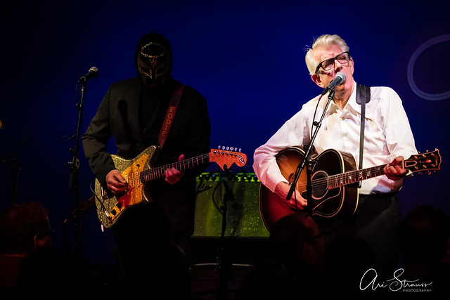 At the beginning of the encore, Los Straitjackets came out without Nick. I’m not entirely sure all of what they said, as my I’ve neglected my DuoLingo Spanish studies, but I know that they said “¡Viva Batman!” and I recognized the classic theme song from the campy ’60s TV series. (RIP, Adam West, you are missed, sir.) Nick returned to the stage and asked the audience, “How about a Rockpile song?” to introduce “When I Write the Book.” In something of a teaser, Nick and the band played an absolute classic tune from his Brinsley Schwarz days, “(What’s Funny ‘Bout) Peace, Love, and Understanding,” and everyone left the stage. In a bit of reversal, after playing one of his songs that Elvis Costello made famous, Nick came to the stage alone and played Elvis’s “Alison” solo on the acoustic guitar.