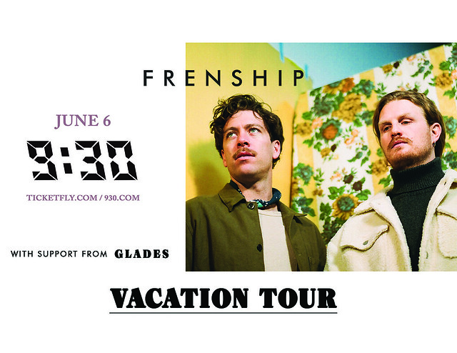 Platinum-selling duo Frenship — James Sunderland and Brett Hite — have released three singles off their upcoming album Vacation, due for release on May 17 via Counter Records. Frenship headline 9:30 Club on Thursday, June 6, and you can win tickets to go with Parklife DC.