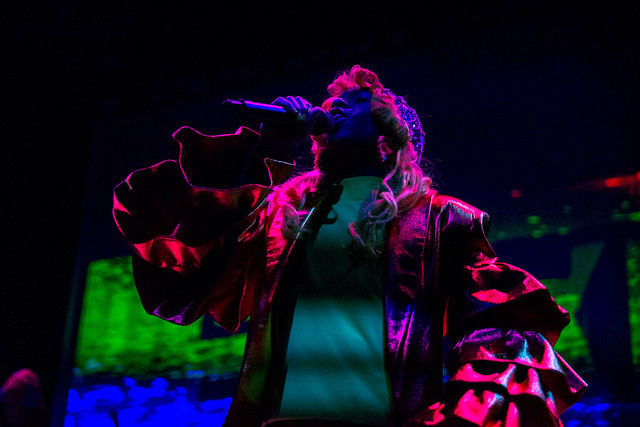The stage was set simply with two backing dancers (who would never break character like the guards from Buckingham Palace), a guitarist, and a synth player. Santigold came alive with her ruffled -sleeved jacket, starting the set with “You’ll Find a Way,” “L.E.S. Artistes,” and “Say Aha.” The first act of her set was dedicated to her debut album, ending it with a huge crowd on stage with Santigold during “Creator.”