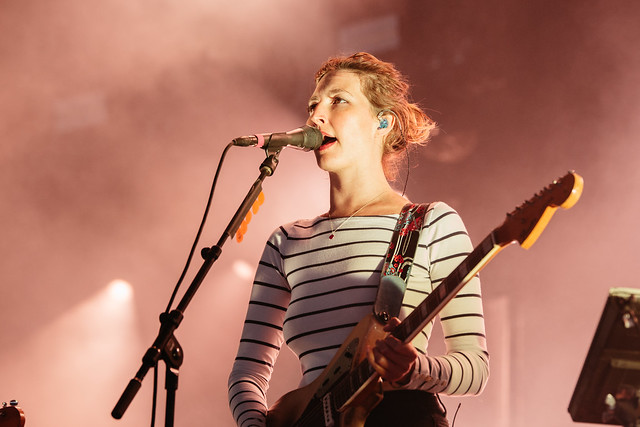 Theresa Wayman fronts Warpaint at Roskilde Festival on June 28, 2017. (Photo by Krists Luhaers)