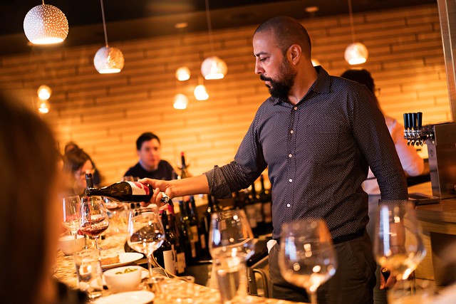 Kabir Amir, owner and sommerlier, pours at Flight. (Photo courtesy Dine-N-Dash)