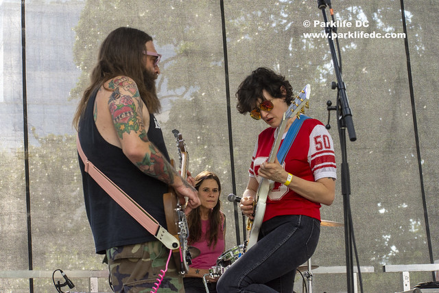 The tuff and tumble trio have been quiet this year, particularly as Ex Hex released an album and toured the world, but Bat Fangs popped into a recent Apple StoryMakers Festival in DC to play an opening set, and we took some pix.