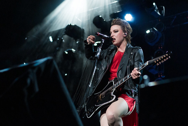 Lzzy Hale fronts Halestorm at Jiffy Lube Live on Aug. 13, 2019. (Photo by Angel Kim)