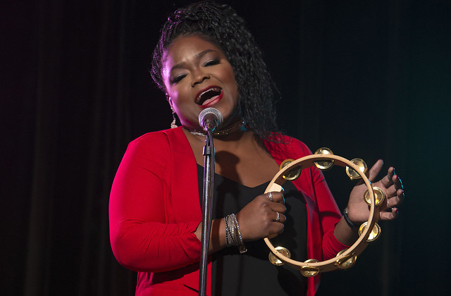 Shemekia’s Grandma Jessie, she told the audience, was a saved woman. She joked that Grandma Jessie “went to church 28 days a week.” With the full band back and a tambourine in hand, Shemekia brought some Southern gospel to Montgomery County. The audience took her voice booming “stand up and praise” as a command to rise to their feet. When she finished the song, Shemekia threw the tambourine. She said that she can’t smash or set a guitar on fire, but she can throw that tambourine.
