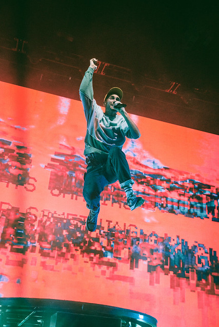 “Two Evils,” a moodier song, was performed against a blood orange moon background. Later, the band played a collaboration song with Marshmellow, “Happier.” Dan went into the crowd during “Flaws,” and he interacted with Stormers in the middle of the floor, embracing every single second.