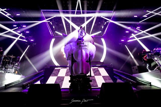 Thug’s entrance reminded me of a UFO landing. Green clouds of smoke moonwalk across the stage as he rose from the depths of The Anthem, coke white fit, looking like a fallen angel. His familiar cadence told stories of trials and tribulations all the while giving a glimpse into the lavish life of the “Slime.” Bondage chains and attachments adorned his body alongside his iced out neck and wrist put a slight chill in the air. This was chess not checkers. Kelly joined him on stage for their joint track “Ectsacy,” leaving us all thinking “did we take the red or blue pill?”