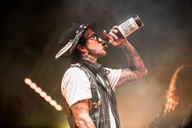 Yelawolf takes a swig from a bottle of his Creek Water branded Whiskey at The Fillmore Silver Spring on Nov. 5, 2019. (Photo by Shedrick Pelt)