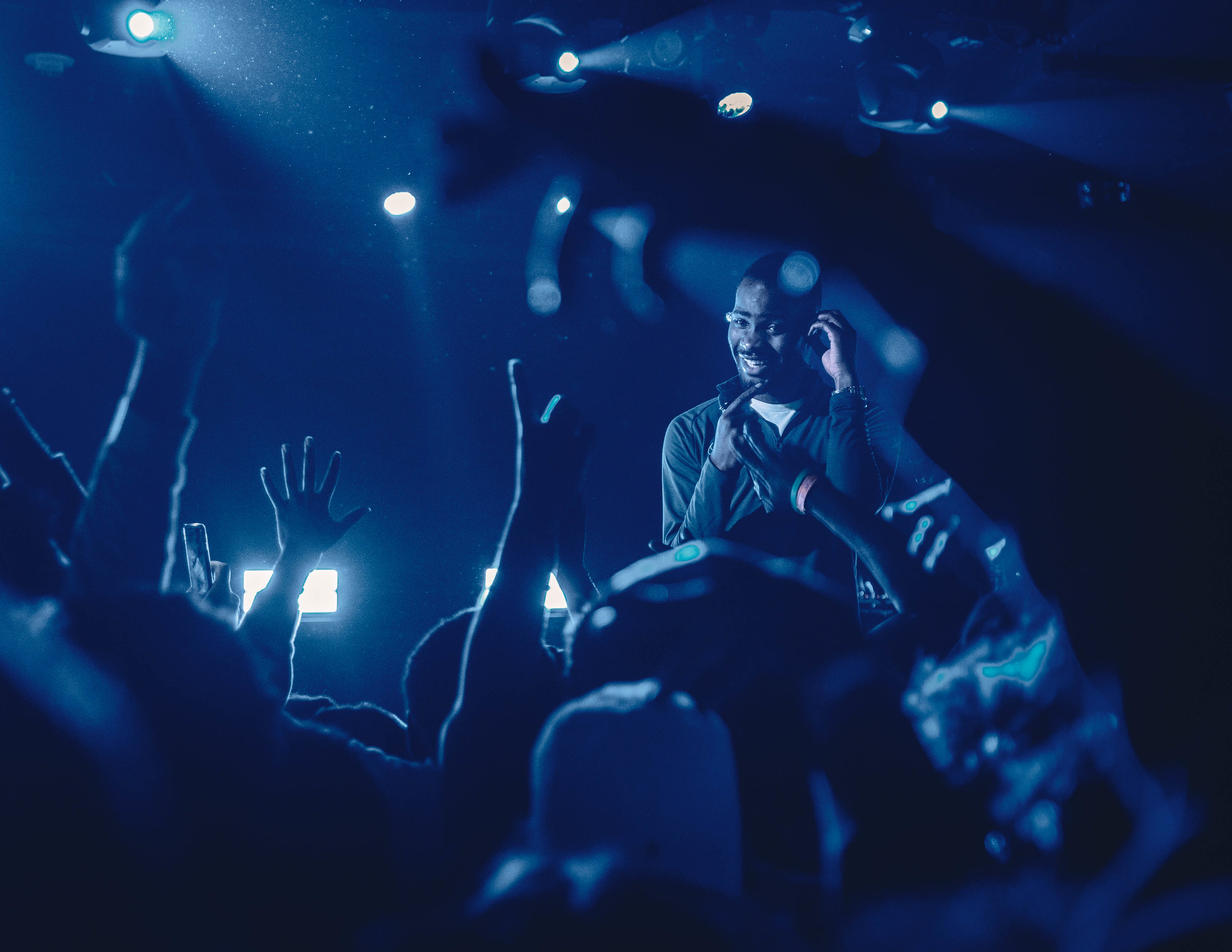 The entire room erupted into madness as soon as the beat dropped to “18Hunna,” the hit song by Headdie One featuring Dave. He paced the stage and partied along with the crowd until it was time to deliver his verse. The song ended and a Tiago Silva chant roared around the crowd as they expected the song named after the famed soccer player. Dave laughed and let them know that it actually wasn’t up next as a piano was rolled out on stage. Phone flashlights lit up the room as the crowd fell silent. Dave played the piano while performing his single “Black,” a song breaking down the struggles of the black experience growing up in South London.