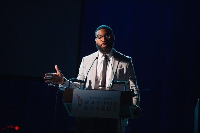 The MusicianShip Executive Director Jeffery Tribble Jr. speaks at the 2019 Wammie Awards ceremony at the Lincoln Theatre on March 31, 2019. (Photo by Shaughn Cooper)
