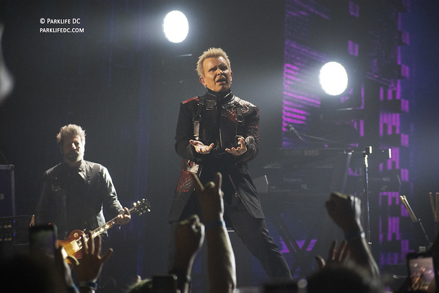 Clad in leather and lace, the largely Gen X audience (which did include a lot of younger folks as well) continued to dance or bang their heads through Billy’s signature mix of punk and hard rock. That mix of course wouldn’t be the same without famed guitarist Steve Stevens, who stood to Billy’s right, whipping his instrument into the air and moving with incredible dexterity. Steve took center stage alone several times, particularly to enrapture the audience with instrumental interludes that gave the rest of the band a break or Billy the opportunity to make a costume change.