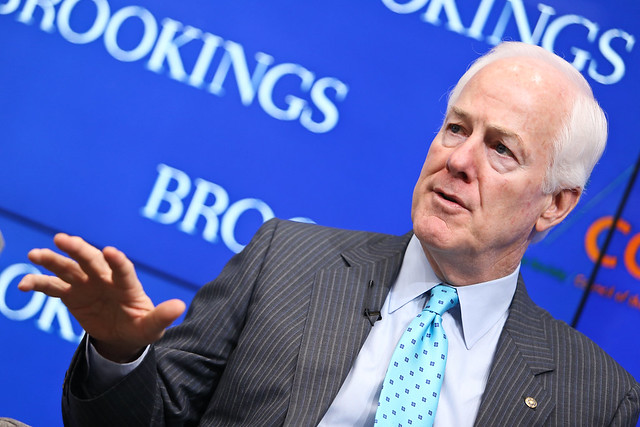 Sen. John Cornyn (R-Texas) speaks to the Brookings Institution in 2016. (Photo courtesy Brookings Institution)