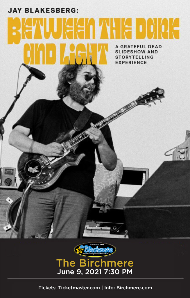 Between The Dark and Light: is a fast paced slideshow/storytelling presentation featuring rock-and-roll photographer Jay Blakesberg, who shares many stories from his amazing 40+ year career photographing the Grateful Dead experience. During this 90-minute presentation, the charismatic and funny Blakesberg regales attendees with photos and stories related to his epic rock-and-roll American Dream story.