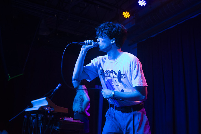 Take the title track of the full-length Container as an indicator of what to expect from The Wants. Played early in the set, the catchy tune rolled over our ears like rippling silk — smooth and pleasing but also with ragged rolls and folds. Madison danced awkwardly across the stage at Songbyrd to be greeted on the other side by bassist Yasmin Haddad, who built a foundation for the frontman’s guitar and synths with her hypnotic melodies. Filling out the extraordinary triad, drummer Jason Gates nailed the whole thing down with pulsating percussive power.