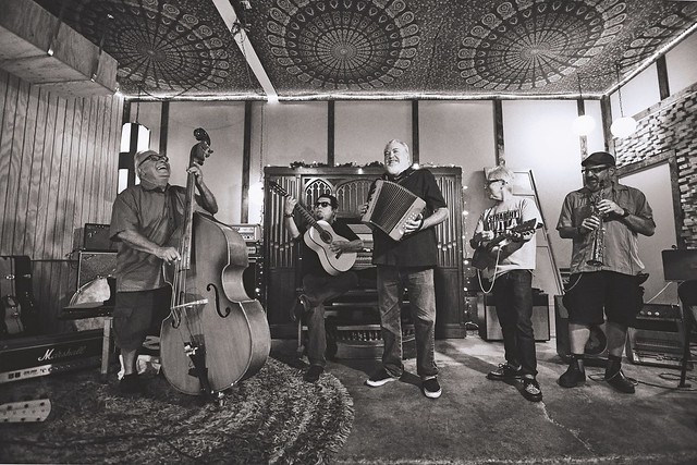 Their roots go all the way back to the early 1970s, with the meeting of Garfield High School students David Hidalgo (vocals, guitar, accordion, fiddle, requinto jarocho) and Louie Pérez ( drums, guitar, vocals). The band quickly expanded to include fellow students Cesar Rosas (vocals, guitar, bajo sexto) and Conrad Lozanon (bass, guitarron, vocals). The band’s final permanent member, Steve Berlin (sax, keys) joined after producer T-Bone Burnett brought him in to play on the band’s 1983 EP, …And a Time to Dance. The sextet was completed by touring percussionist Alfredo Ortiz.