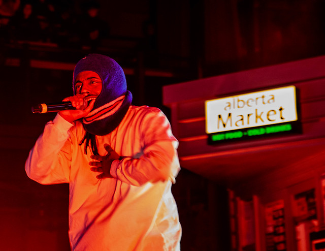 Aminé ended the night with “Caroline,” the song that started it all for him. Afterward, he thanked the crowd and threw them his sweat soaked ski mask before disappearing through the market doors. The crowd started to file out but the lights never came up. The encore chants started and maybe three minutes later “Mad Funny Freestyle” dropped again, and Aminé came running back on stage. People flowed back into the venue and went into a frenzy as he performed the song one more time. He showed love to everyone in the balconies and jumped down to the barricade to give hugs in the crowd and take pictures as the lights came up.