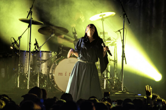 It was a beautiful sight to see so many hanging onto every note, and Mitski reciprocated that love, gesturing and running from one side of the stage to the next — expanding on her stage theatrics from previous tours. At times it appeared as if she was pulling in the energy from the audience to cheers and hands aloft in the shape of hearts.