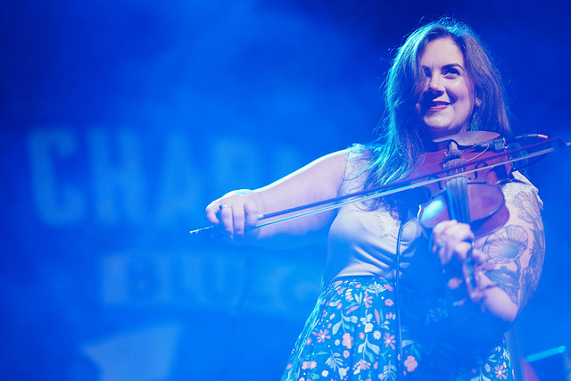 Allie Kral of Yonder Mountain String Band plays the fiddle at the Charm City Bluegrass Festival in Baltimore on April 29, 2022. (Photo by Casey Vock)