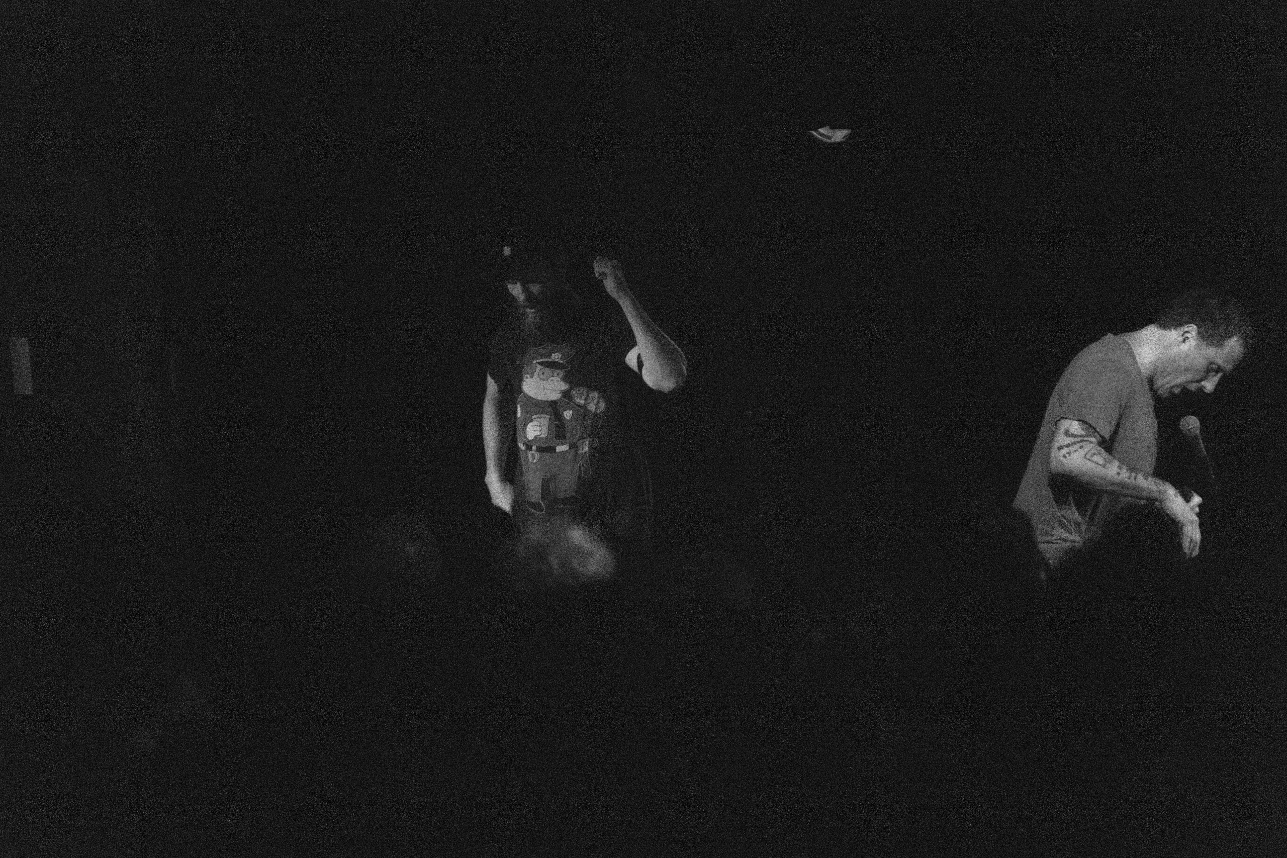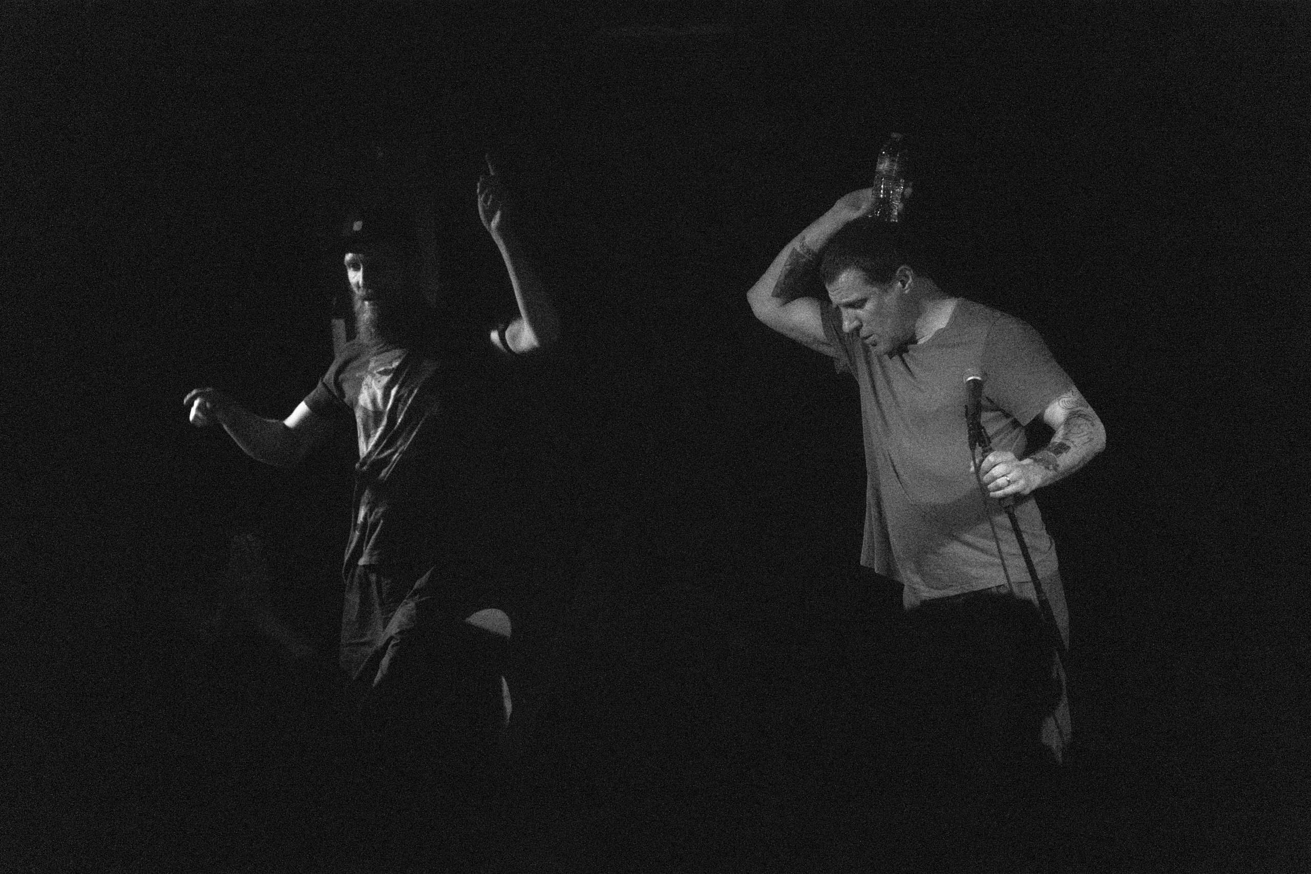 It turns out that the duo — Jason Williamson and Andrew Fearn — are serious artists who make compelling music. They recently filled Black Cat in DC with a lengthy set of about 23 songs, presenting an engrossing act that makes you reconsider what exactly constitutes a concert.