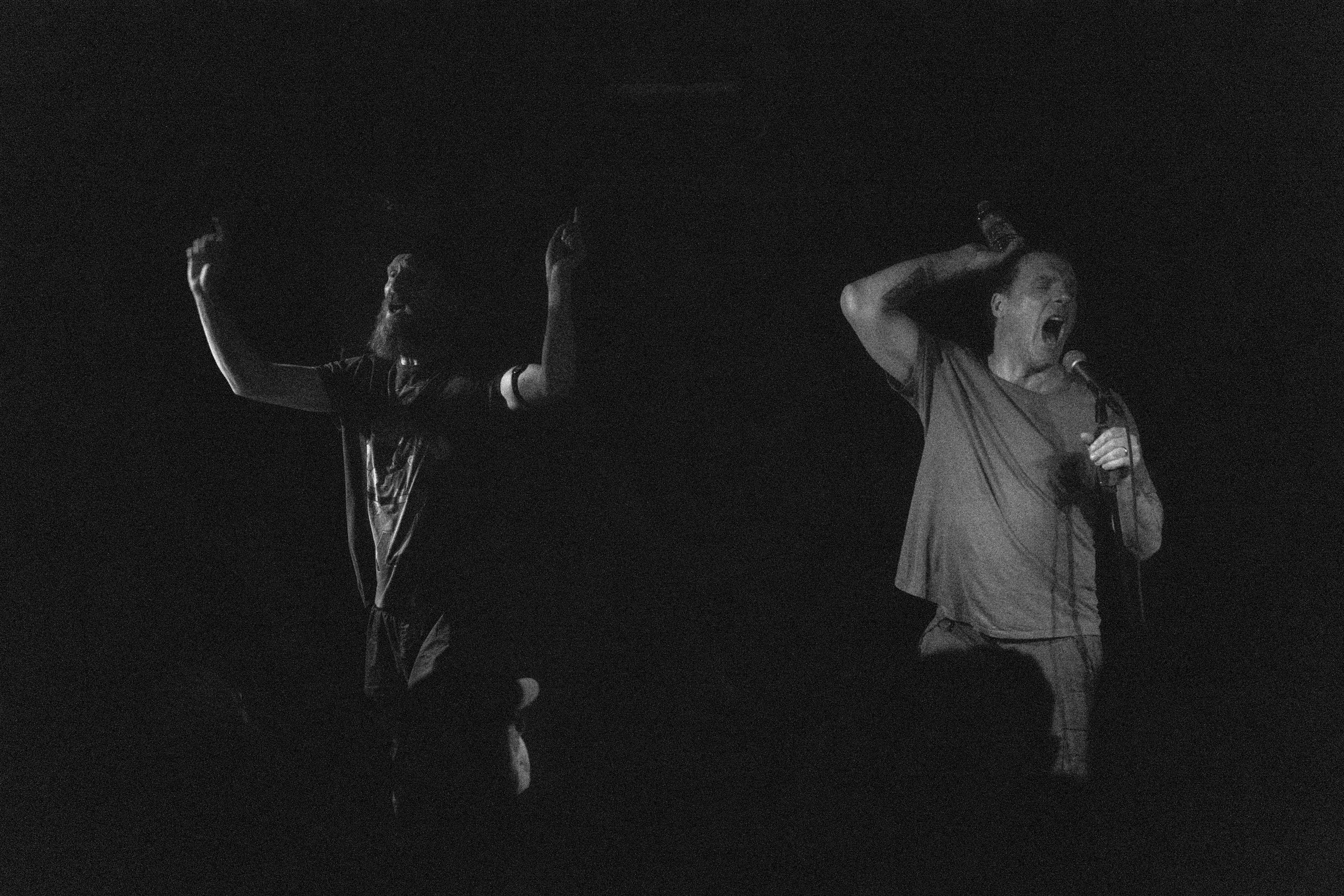 Sleaford Mods dance in the dark at Black Cat on May 21, 2022. (Photo by Mickey McCarter)
