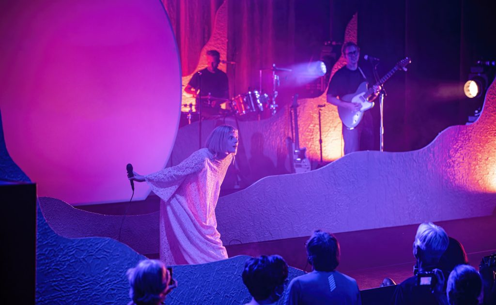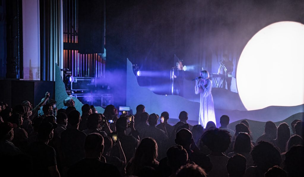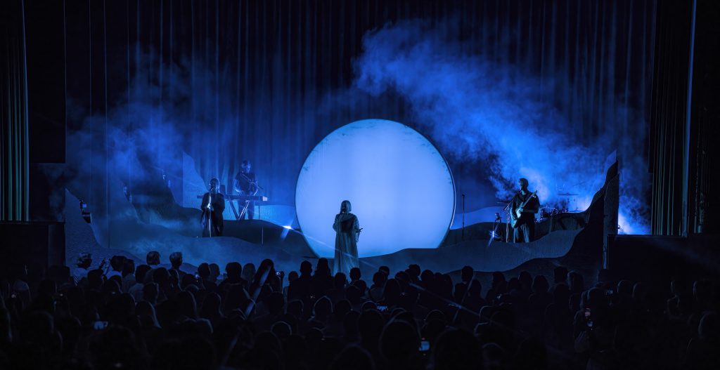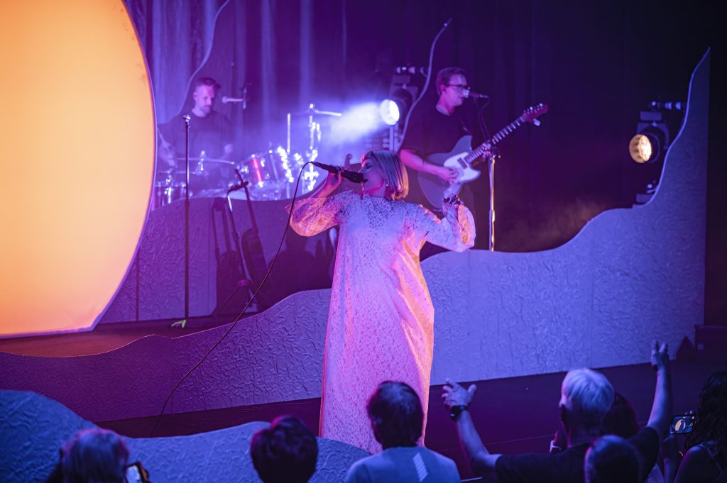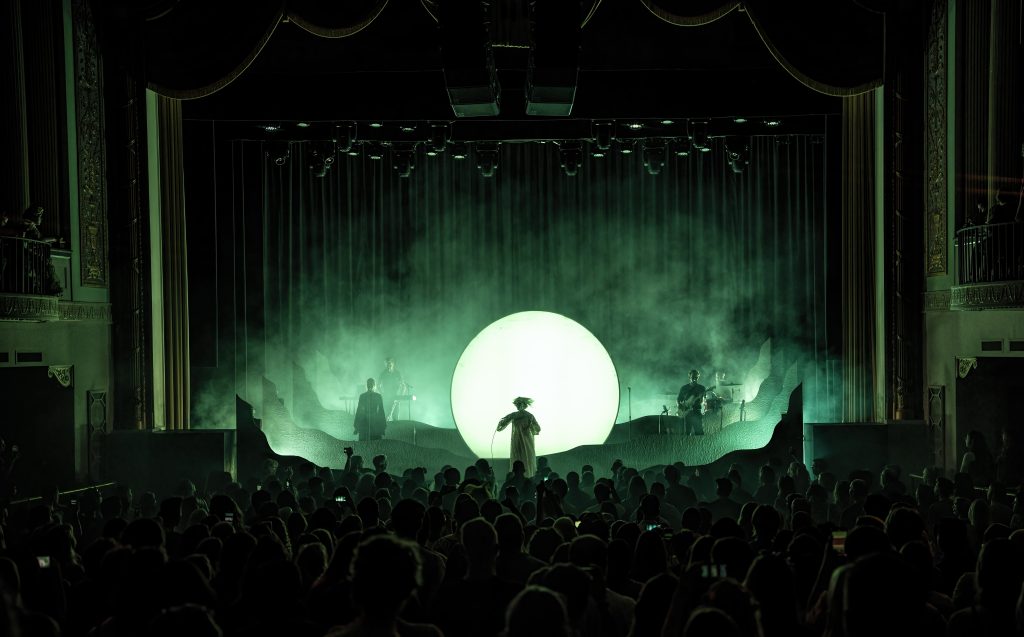 Experiencing an Aurora performance is definitely a something that creates and celebrates losing one’s self in feelings. She told the audience, “you become truly divine when you love and learn to be loved.” There’s a melancholy nature in the music, but there’s also a letting go and learning to enjoy what’s around you — and echoing across the theater that feeling was joy and an appreciation of being in a crowd of strangers, brought together for a brief time in one mutual sensation. And the stage, with its smoke and foredrops of waves created a striking visual that further enhanced a sense of wonder and excitement.