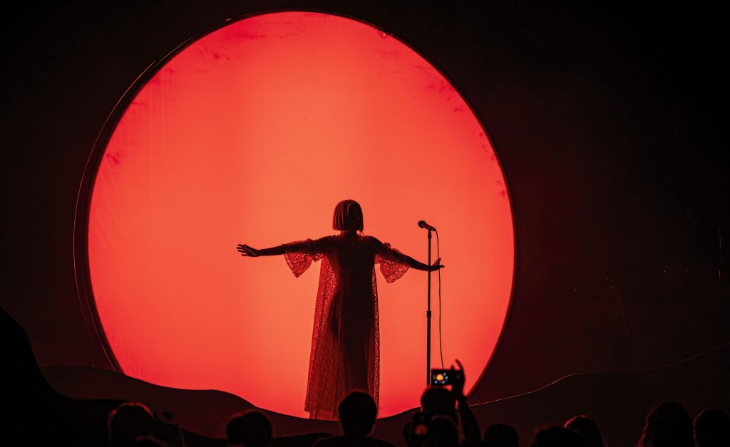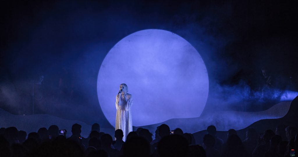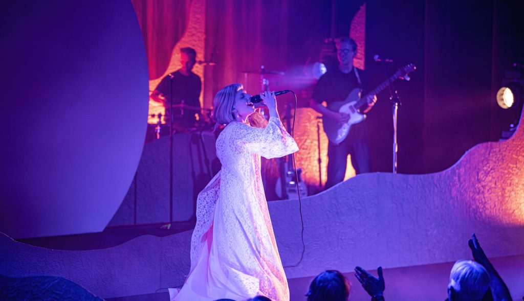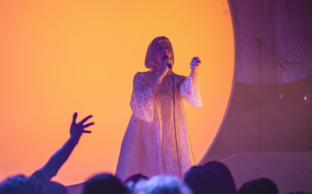 Showcasing much of her most recent album, The Gods We Can Touch, which was released in January, Aurora, backlit by a huge round disc on stage, took the stage on June 5 and raised her arms to welcome everyone as everyone able to got to their feet in the seated, sold-out theater.