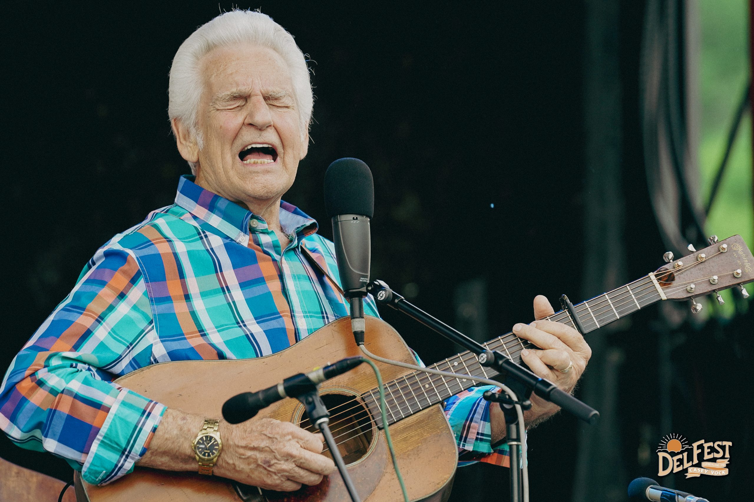 Bluegrass legend Del McCoury performs with his band during DelFest 2022 held over Memorial Day weekend at the Allegany County Fairgrounds in Cumberland, Maryland. (Photo by Casey Vock)