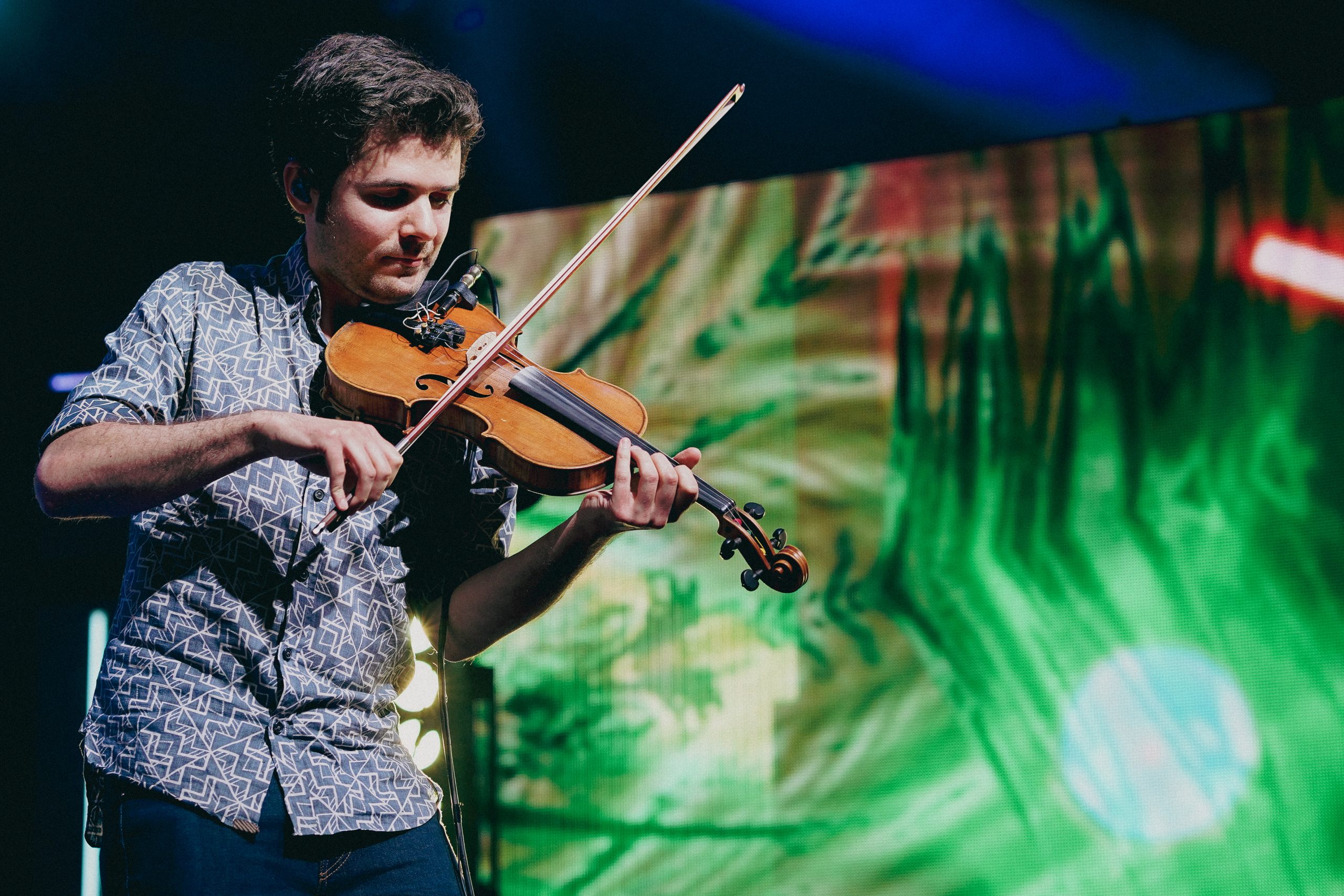 Bass player Royal Masat was classy and businesslike even in footing some of the funkiest numbers of the night, and, with a similar demeanor, Hargreaves managed to provide some of the most stirring sounds of the entire presentation, applying timeless fiddle texture that only made Strings’ adventurous compositions or interpretations that much more fascinating, especially so during a deep-diving take on the Oak Ridge Boys’ “Dig A Little Deeper In the Well,” complete with supporting aquatic-theme visuals on the digital screens.