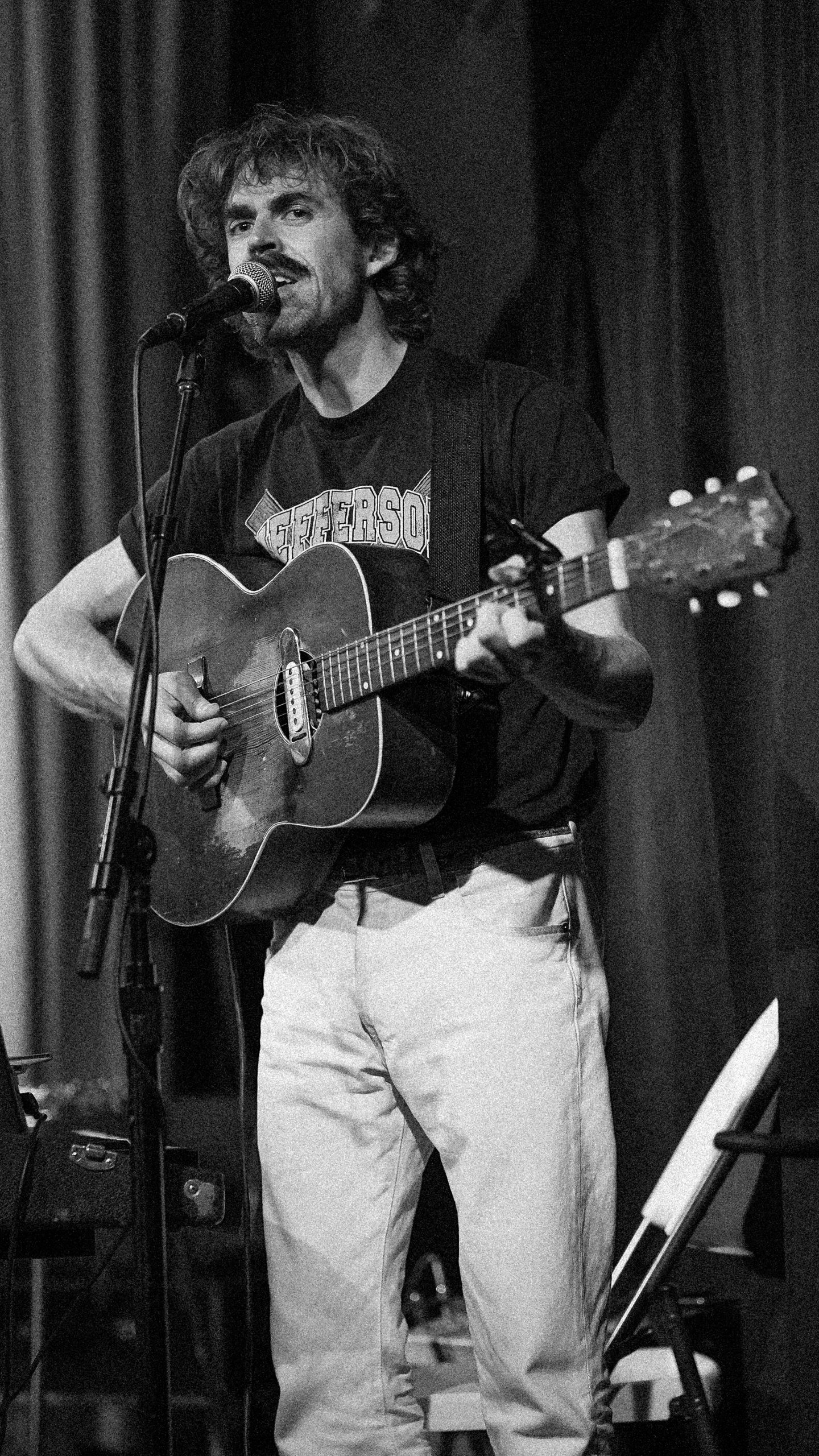 But the night’s opening song wasted no time in also introducing the dark room to the talents of the stoic John James Tourville, a vitalizing electric and pedal steel guitarist and a fiddler and songwriter as well. His solos were symphonically thrilling, in some cases unforeseen, providing wild, momentary egress and then a seamless return to the barren, pendulous blues sounds that have fueled this band since its inception as The Tumbleweeds.