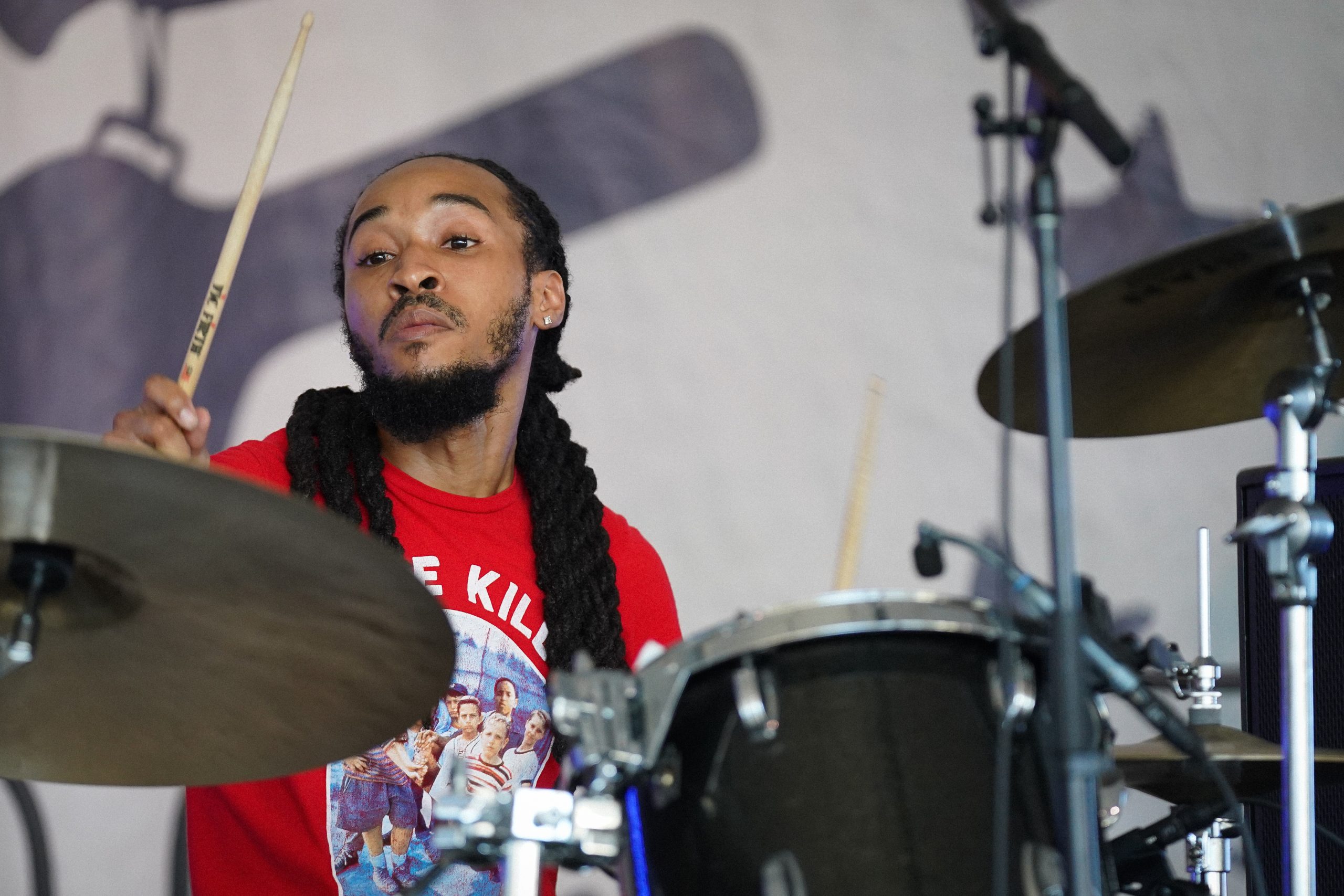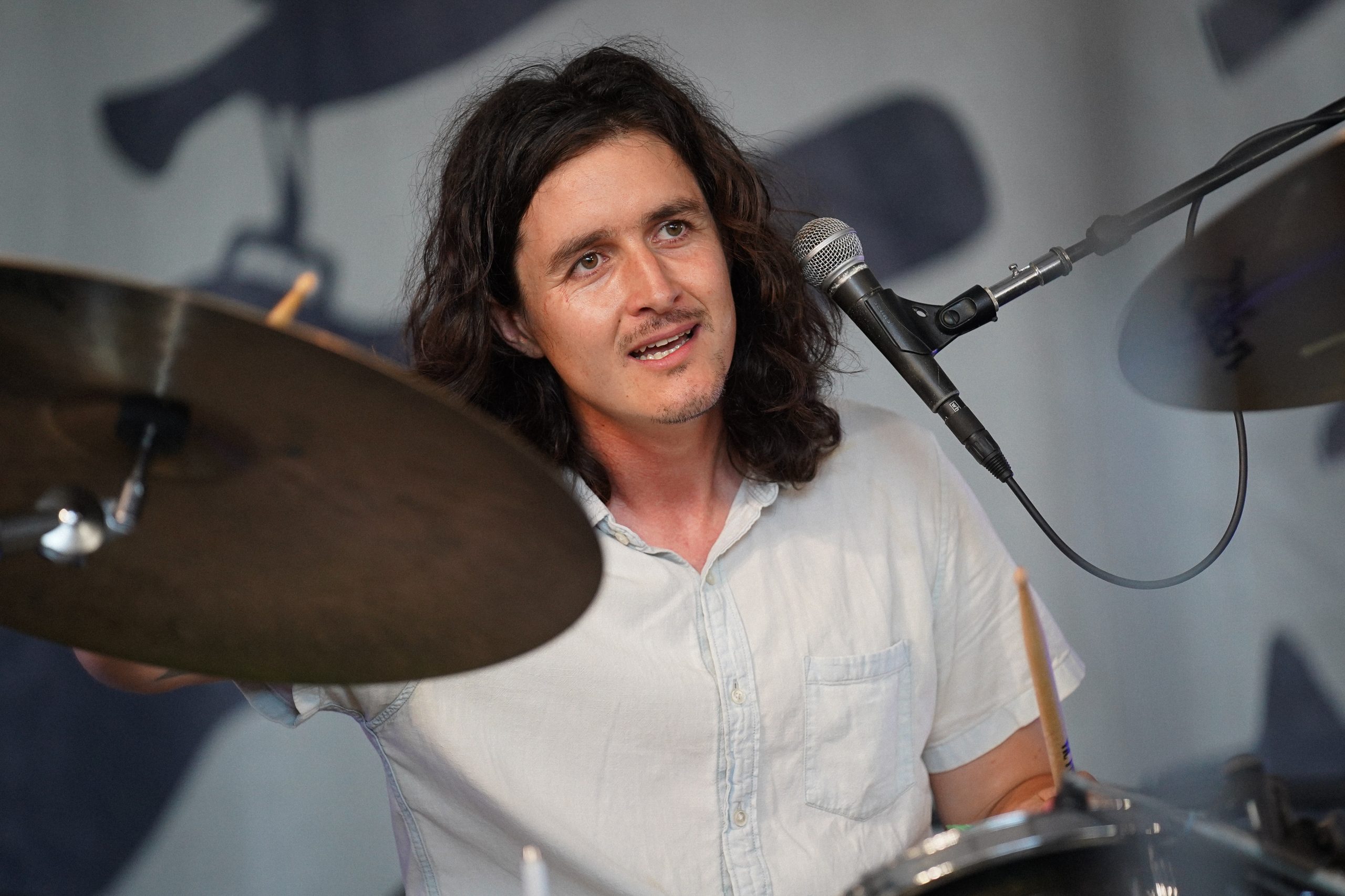 Joe Westerlund, a respected drummer from Wisconsin, was on stage with three different acts throughout the weekend, not an easy task for any musician. Joe’s a touring member of The Dead Tongues, the initial band to play on the Quad Stage Friday, the drummer for The A’s, a group that played for its first time ever on Saturday, and then on Sunday was part of the Psychic Hotline performance. Not only did it require tremendous preparation in terms of rehearsal and coordination, but Westerlund said it also took time for him to piece together the right drum and percussion setups.