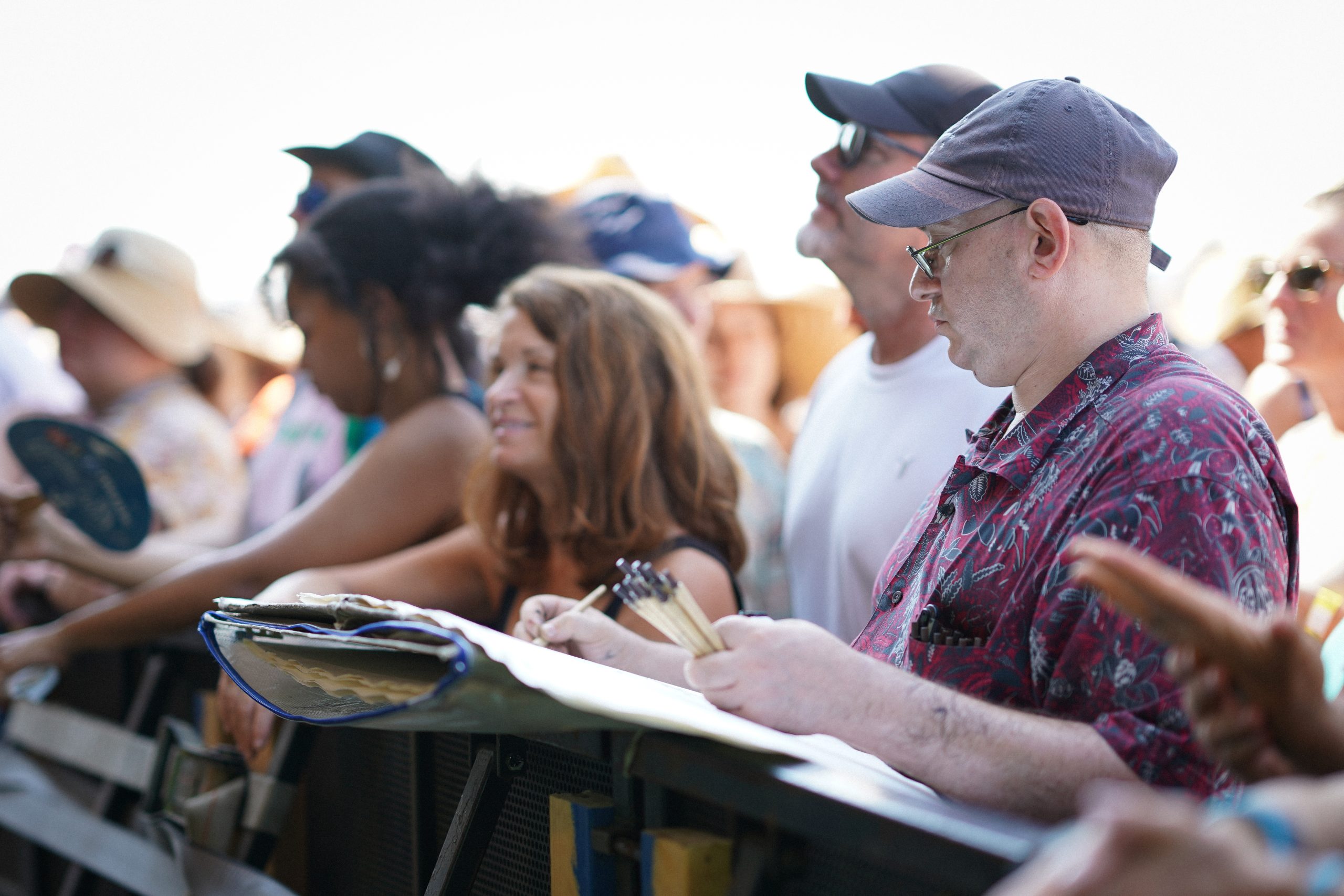 Sailboats and yachts were already glimmering in the hot sun, afloat in the waters of Newport Harbor and further to the west in Narragansett Bay as fans lined up to make their way into the grounds Friday morning. A tall posterboard, in the same painted script seen on all the event signage over the years, reminded guests: “We’re still stronger when we sing together,” a pandemic-era twist on the slogan that has for decades spiritualized the event as a mecca for fans of the expanding folk genre.